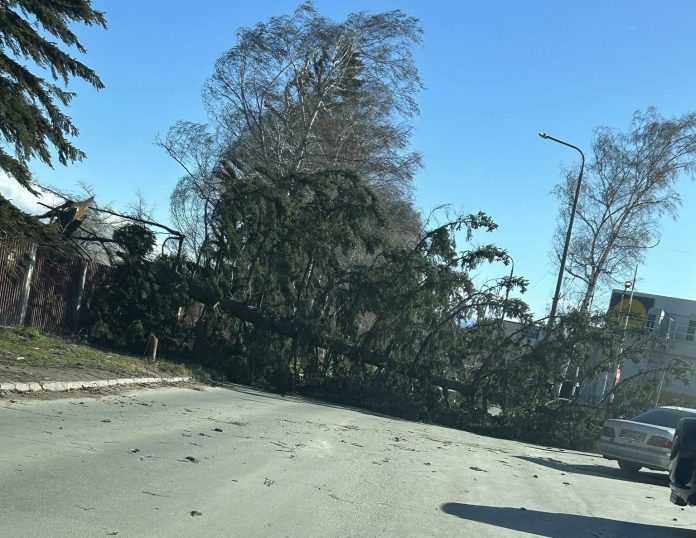 Голямо дърво се стовари на ул. „Георги Кирков“, до магазин LIDL във Велинград, но за щастие при инцидента няма пострадали.
