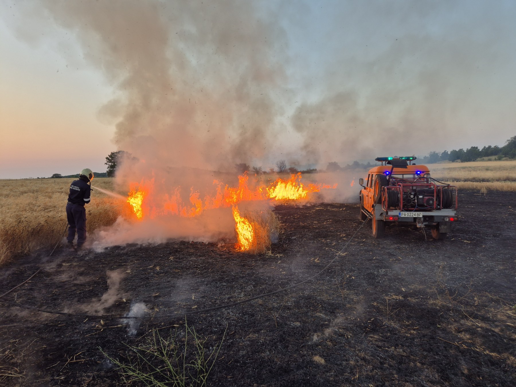 Горяха ниви, стърнища и треви – огънят стигна до земеделски площи край село Росен.